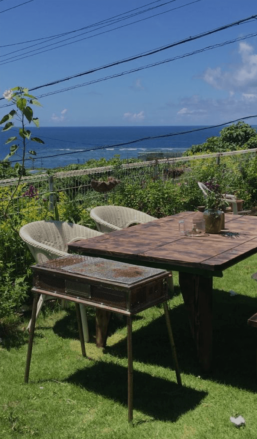 キッチンには冷蔵庫、電子レンジ、電子ポット、ジューサー、炊飯器等を用意しております。庭園では、目の前に宮古ブルーの海が広がっており、鳥のさえずりを聞きながらくつろぐことができます。ガーデンBBQや花火をするスペースも十分設けています。約600坪の敷地を持ち、自然に囲まれた静かでリラックスのできる良い環境です。